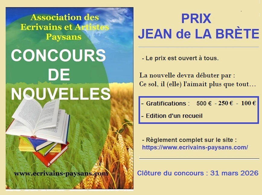3 octobre 2025 par admin Prix Jean de la Brète 2026 Le concours de nouvelles 2026 organisé par l’AEAP est lancé. Vous trouverez le règlement sur le site.